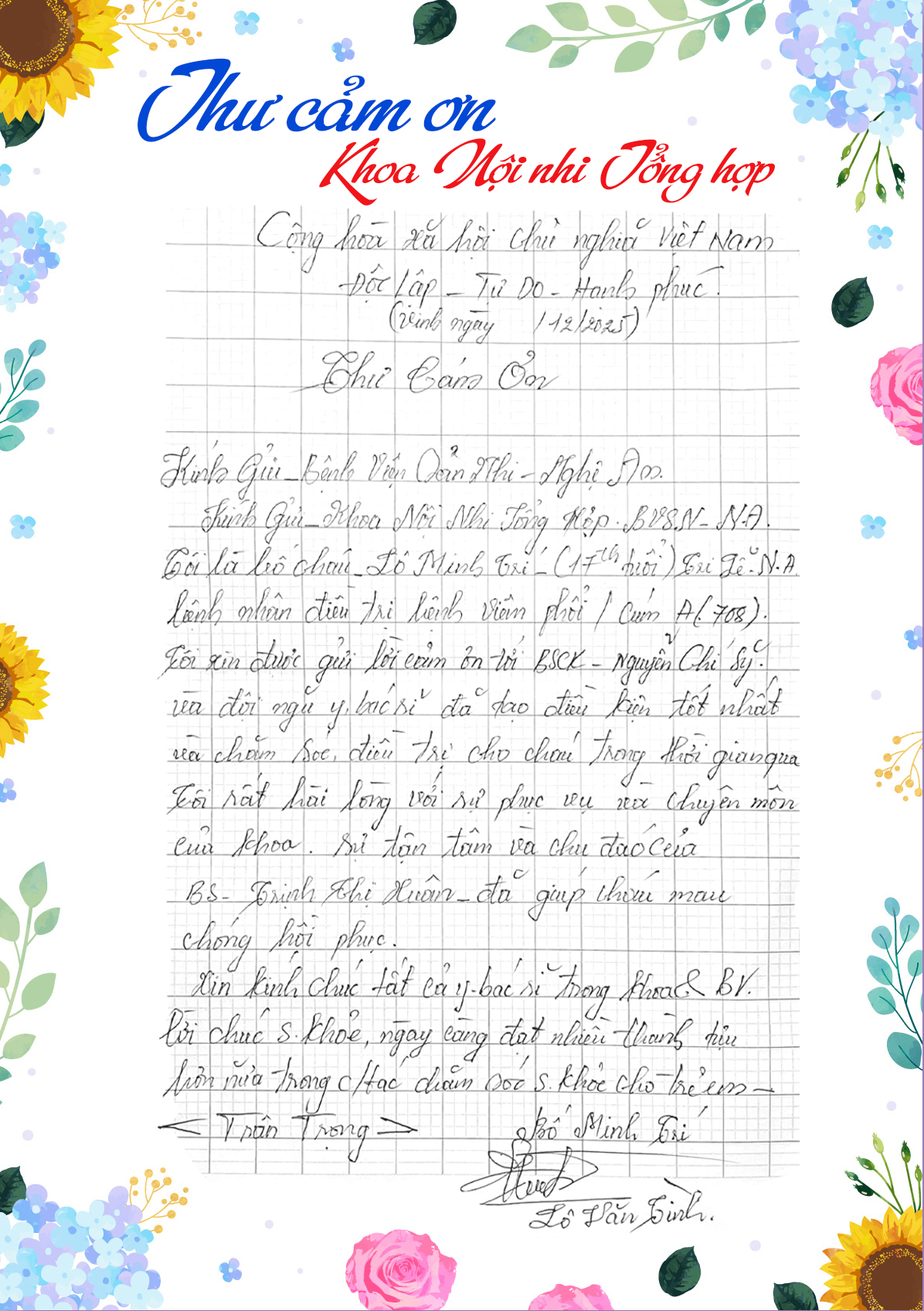 Thư cảm ơn khoa Nội nhi Tổng hợp