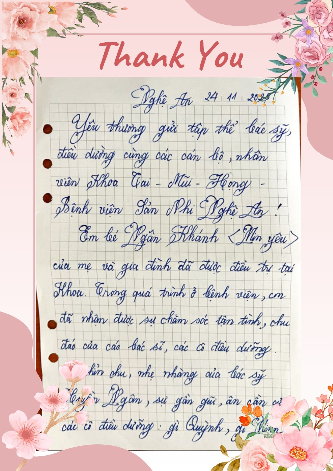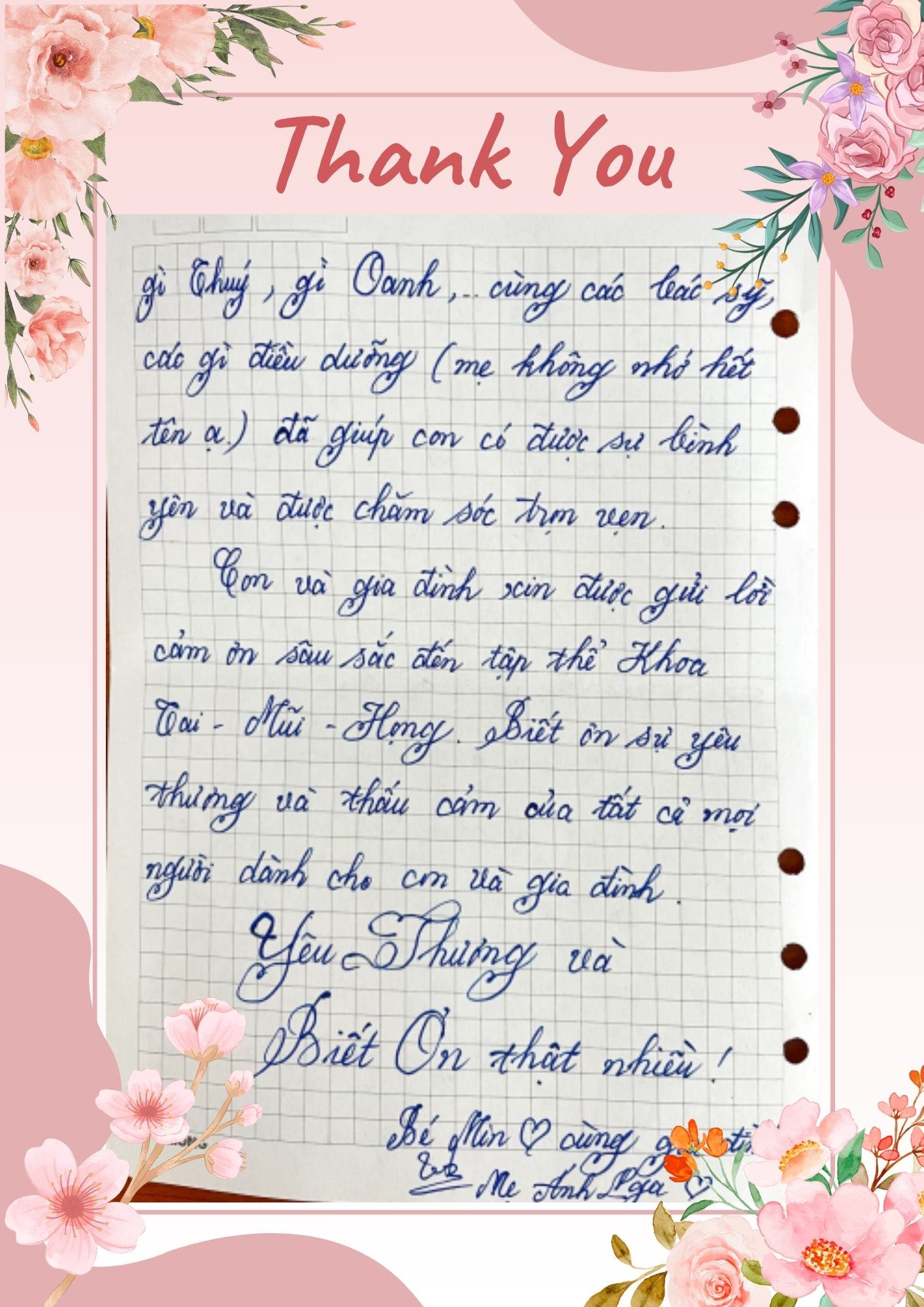 Thư cảm ơn Khoa Tai Mũi Họng