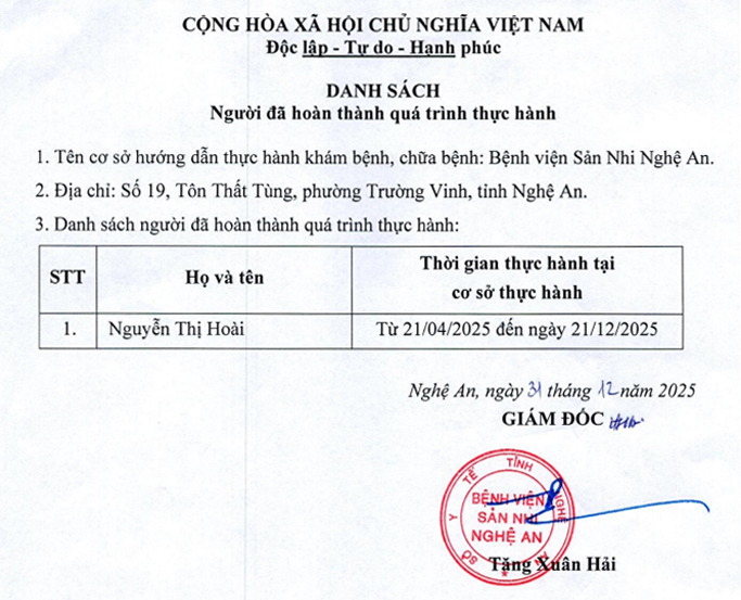 Thông báo Danh sách người đã hoàn thành quá trình thực hành đợt 8 năm 2025
