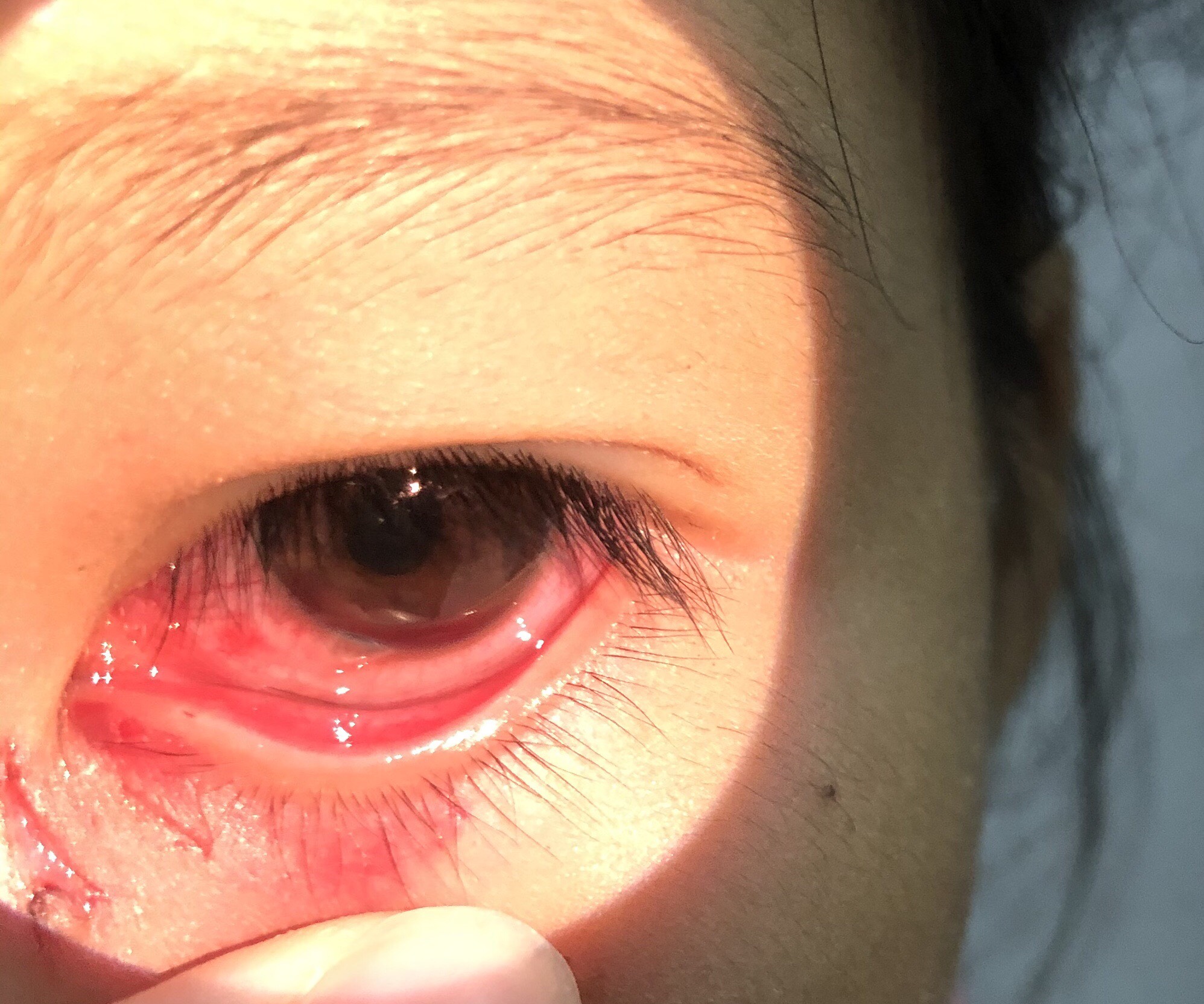Hình ảnh mắt trái của bé N. khi bị đinh rỉ đâm vào mắt