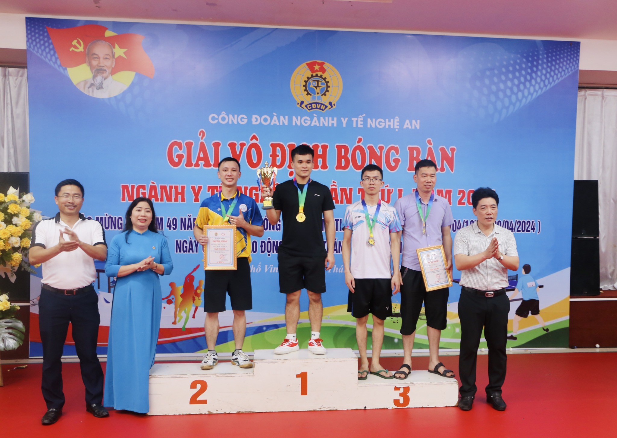 Sau 2 ngày tranh tài sôi nổi, Giải vô địch bóng bàn ngành Y tế Nghệ An lần thứ nhất năm 2024 đã bế mạc vào trưa 14/4 tại Hội trường tầng 2 - Trung tâm Cung Lễ hội - phường Trường Thi - Thành phố Vinh (số 1, đường Trường Thi, Thành phố Vinh, Nghệ An).