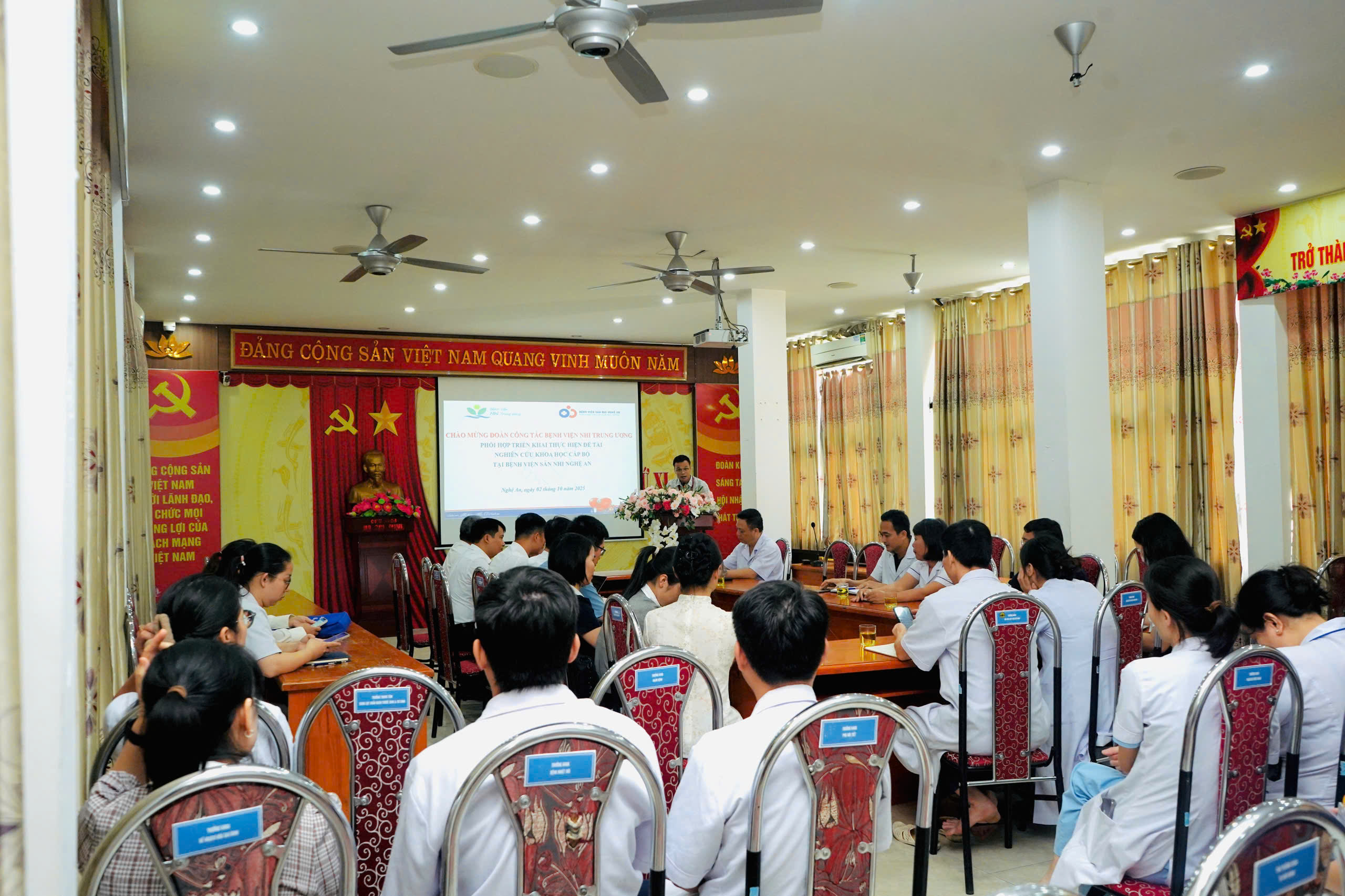 Về phía Bệnh viện Sản Nhi Nghệ An, buổi làm việc do TS.BS Trần Văn Cương – Phó Giám đốc Bệnh viện, chủ trì. Cùng các cán bộ đại diện các khoa/phòng liên quan như Khoa Kiểm soát nhiễm khuẩn, các khoa Hồi sức Cấp cứu Sơ sinh, Hồi sức Tích cực - Chống độc, Hồi sức Tích cực Ngoại khoa, Khoa Huyết học - Vi sinh, Phòng Công nghệ thông tin,phòng Kế hoạch tổng hợp, phòng Tài chính kế toán và Phòng Nghiên cứu khoa học, Đào tạo & Chỉ đạo tuyến (NCKH, ĐT&CĐT).