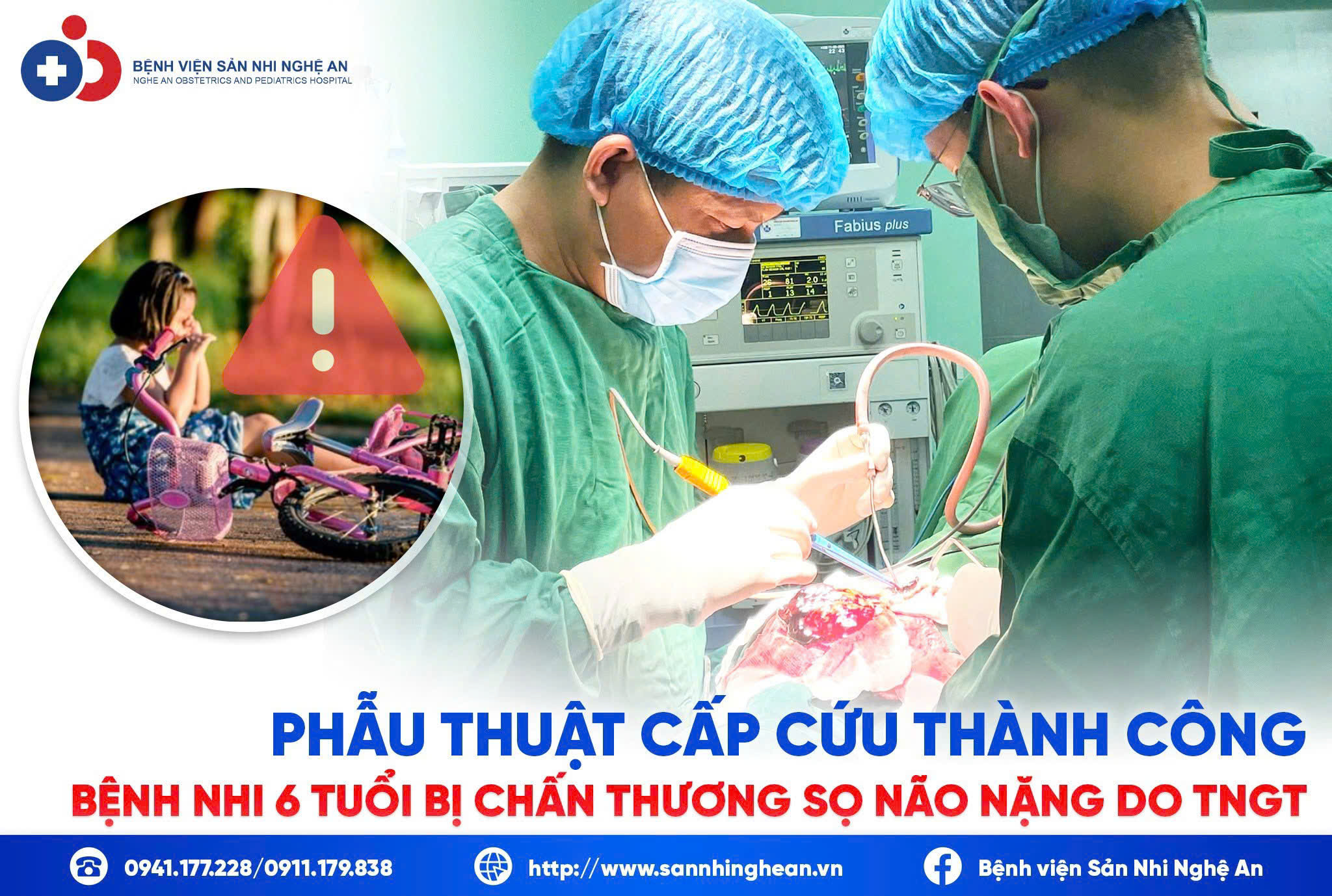 Vừa qua, các bác sĩ Bệnh viện Sản Nhi Nghệ An đã thực hiện phẫu thuật cấp cứu và điều trị thành công cho bệnh nhi bị chấn thương sọ não nặng do tai nạn trong lúc đạp xe chơi đùa.