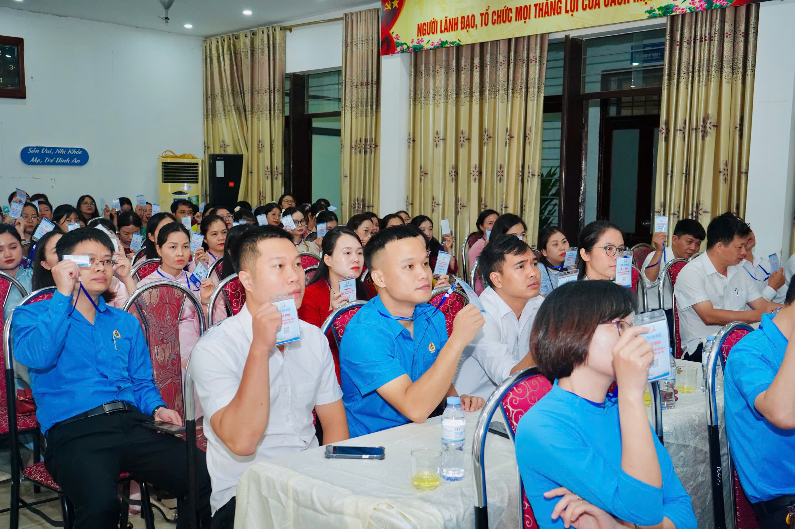 Các đoàn viên Công đoàn tham gia biểu quyết tại Đại hội