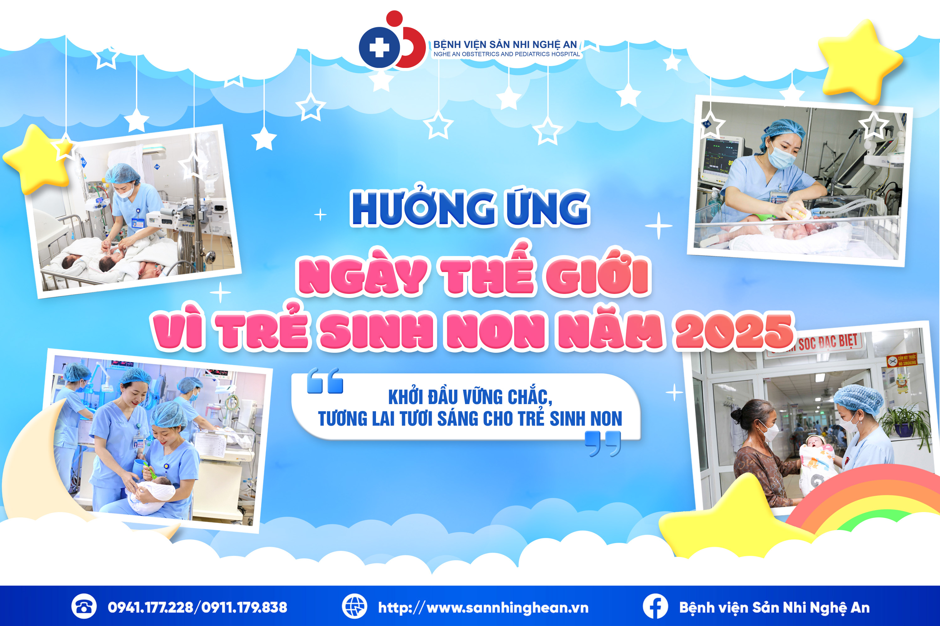 Hưởng ứng ngày Thế giới về trẻ sinh non năm 2025, Bệnh viện Sản Nhi Nghệ An đã tổ chức nhiều hoạt động thiết thực và ý nghĩa như: tư vấn trực tiếp kết hợp truyền thông giáo dục sức khỏe cho phụ nữ có thai, bà mẹ về chăm sóc sức khỏe dinh dưỡng và chăm sóc trẻ sơ sinh, nuôi con bằng sữa mẹ, thực hiện Kangaroo, đặc biệt với trẻ sơ sinh nhẹ cân/non tháng; treo biểu ngữ, banner, khẩu hiệu trong khuôn viên bệnh viện nhằm lan tỏa thông điệp nhân văn về chăm sóc trẻ sinh non.