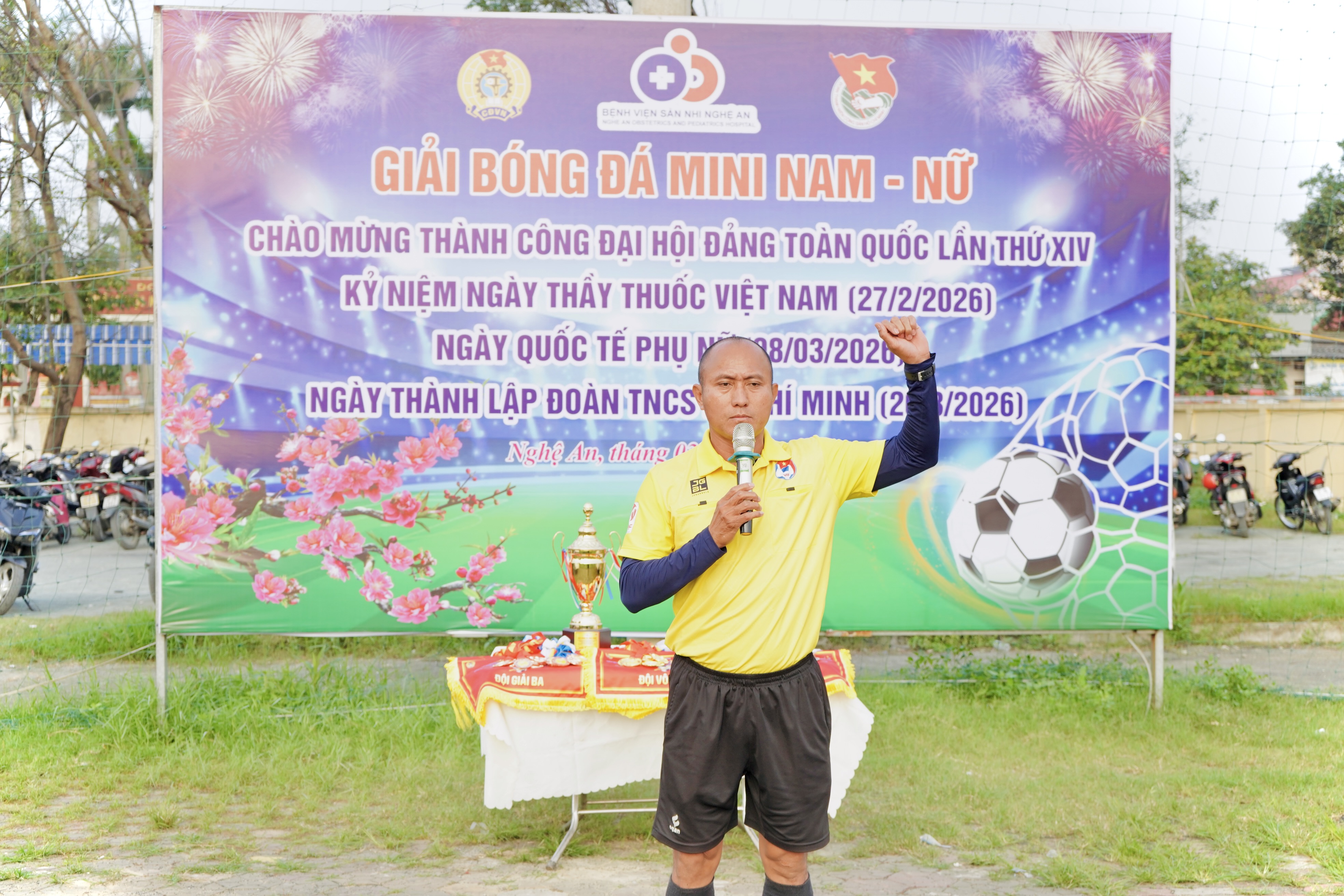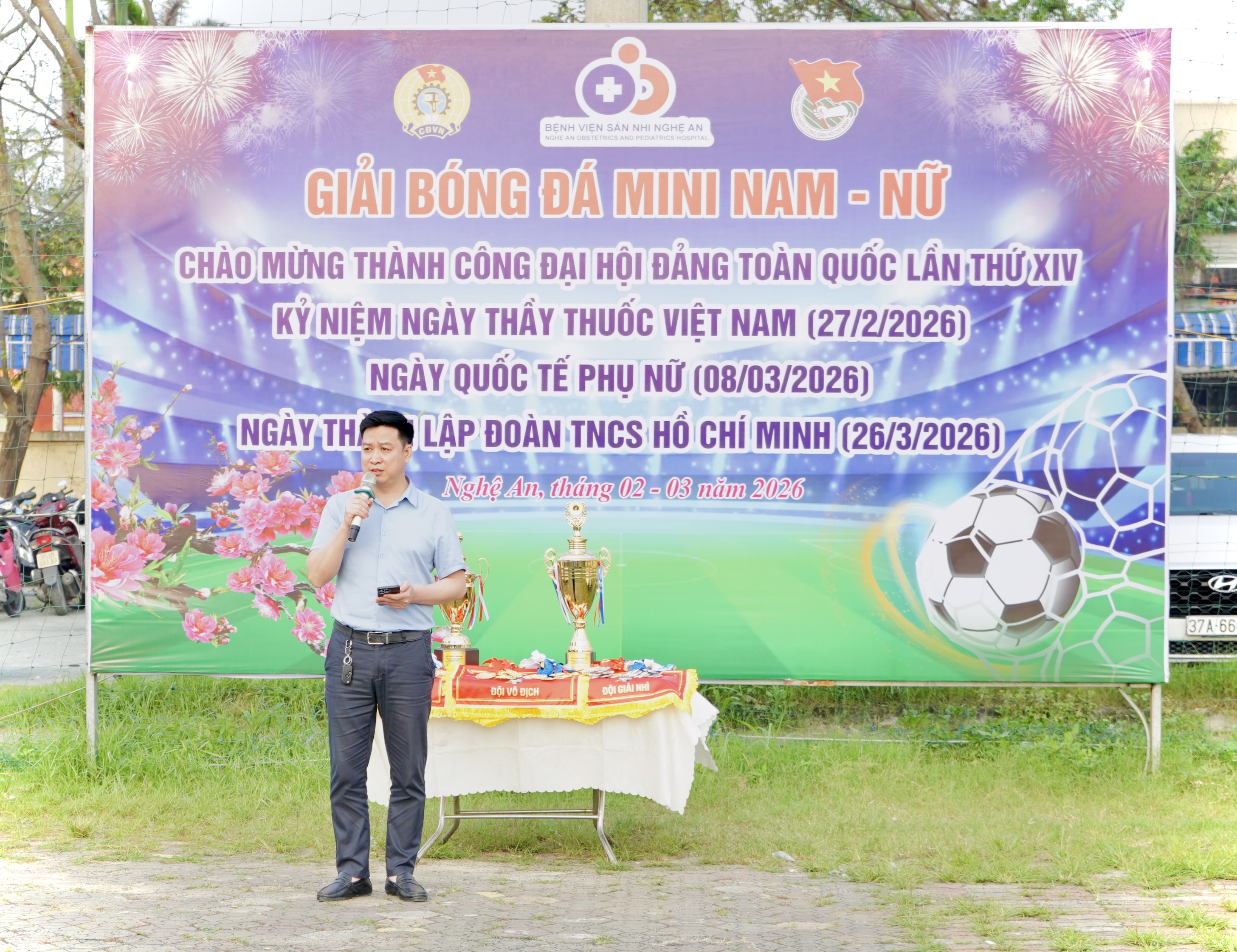 Chiều ngày 08/3/2026, tại sân cỏ nhân tạo số 01, Bệnh viện Sản Nhi Nghệ An đã tổ chức Lễ khai mạc giải bóng đá mini nam – nữ năm 2026. Đây là hoạt động thiết thực của Bệnh viện nhằm chào mừng thành công của Đại hội Đảng toàn quốc lần thứ XIV và hướng tới các ngày lễ lớn của đất nước trong năm 2026.