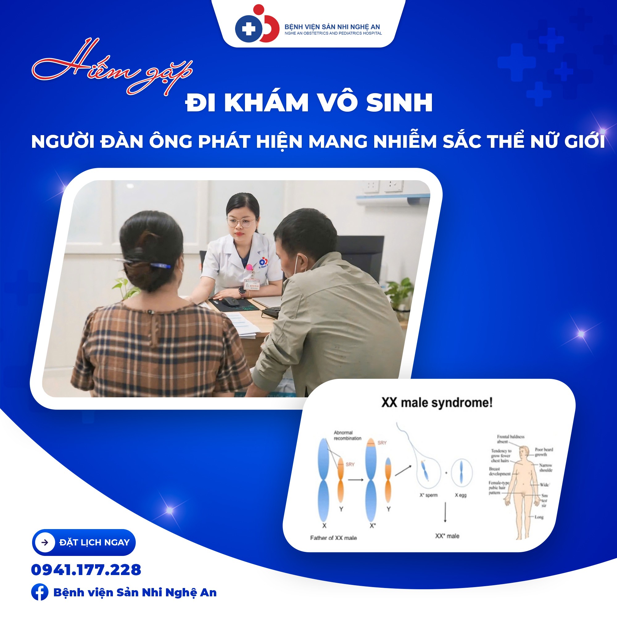 Vừa qua, tại Phòng khám Hiếm muộn – Nam học, Bệnh viện Sản Nhi Nghệ An, các bác sĩ đãchẩn đoán thành công một trường hợp vô sinh nam do hội chứng Dela Chapelle (46,XX) - một rối loạn di truyền hiếm gặp. Đây là ca bệnh đầu tiên được phát hiện tại Bệnh viện, đánh dấu bước tiến mới trong công tác chẩn đoán và điều triệu vô sinh do nguyên nhân di truyền tại địa phương.
