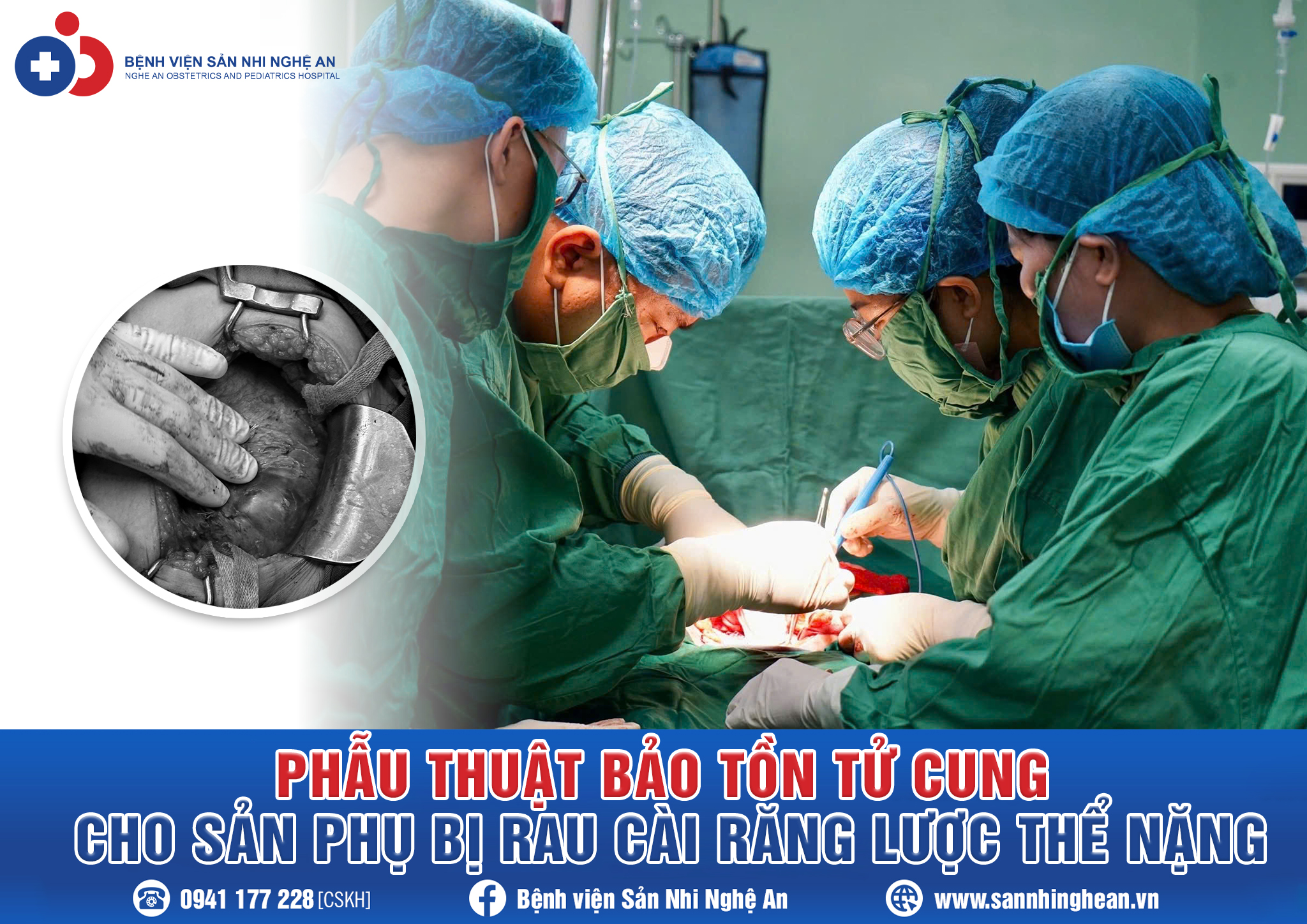 Tại Bệnh viện Sản Nhi Nghệ An, kỹ thuật phẫu thuật rau cài răng lược đã được triển khai thường quy trong nhiều năm, với đội ngũ bác sĩ giàu kinh nghiệm và trang thiết bị đầy đủ. Điều này giúp đảm bảo an toàn mẹ và thai nhi, đồng thời tăng tỷ lệ bảo tồn tử cung trong các trường hợp khó.