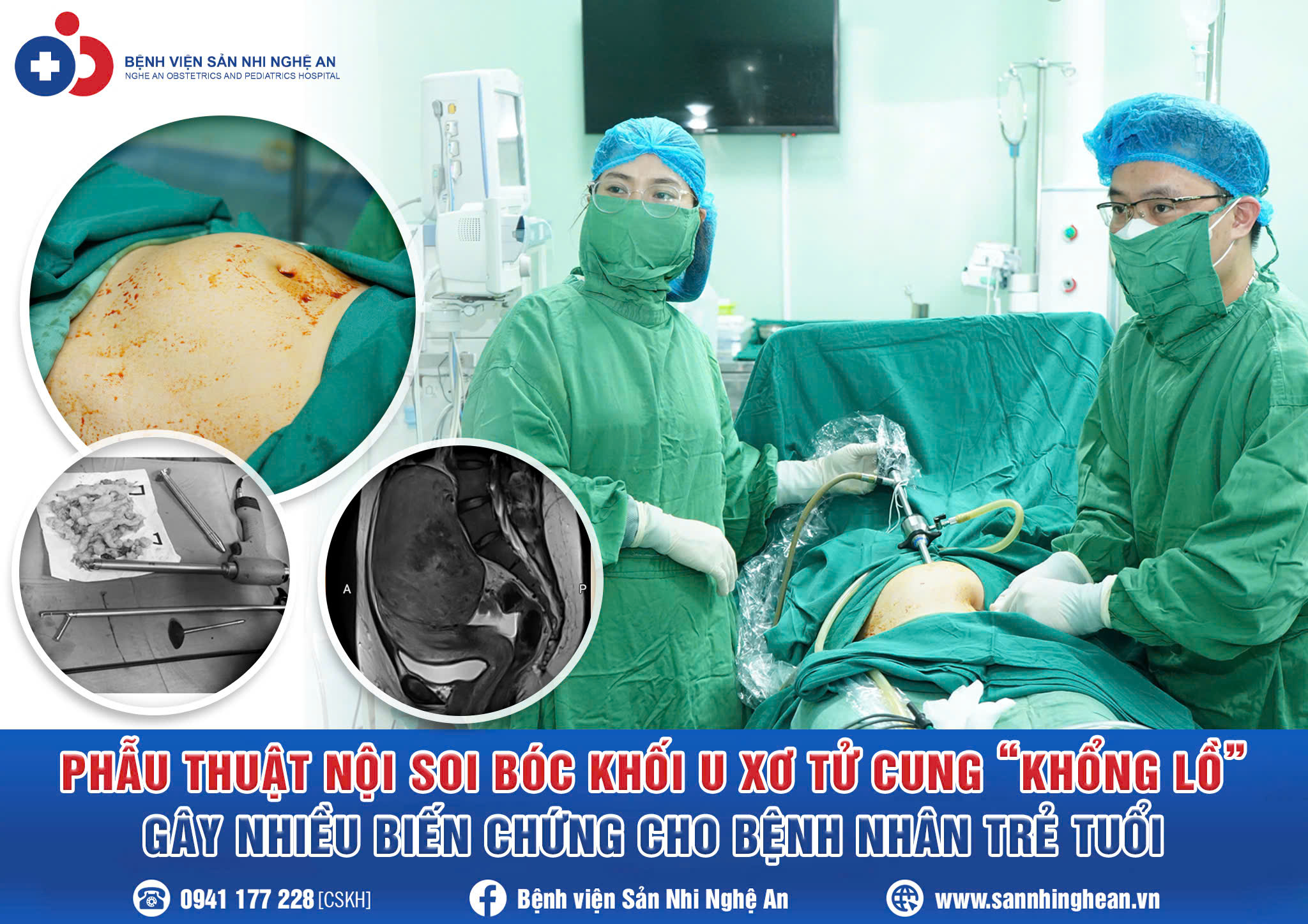 Một khối u xơ tử cung “Khổng lồ” có kích thước tương đương thai 4 tháng, vừa được các bác sĩ khoa Phụ ngoại – Bệnh viện Sản Nhi Nghệ An bóc thành công bằng phương pháp phẫu thuật nội soi hiện đại, sử dụng máy xay Morcellator – thiết bị hỗ trợ phá nhỏ khối u để đưa ra ngoài mà không cần mở mổ. Ca phẫu thuật không chỉ bảo tồn tử cung, giảm tối đa nguy cơ biến chứng, mà còn mở ra cơ hội điều trị hiệu quả, nhẹ nhàng cho nhiều phụ nữ mắc u xơ lớn.