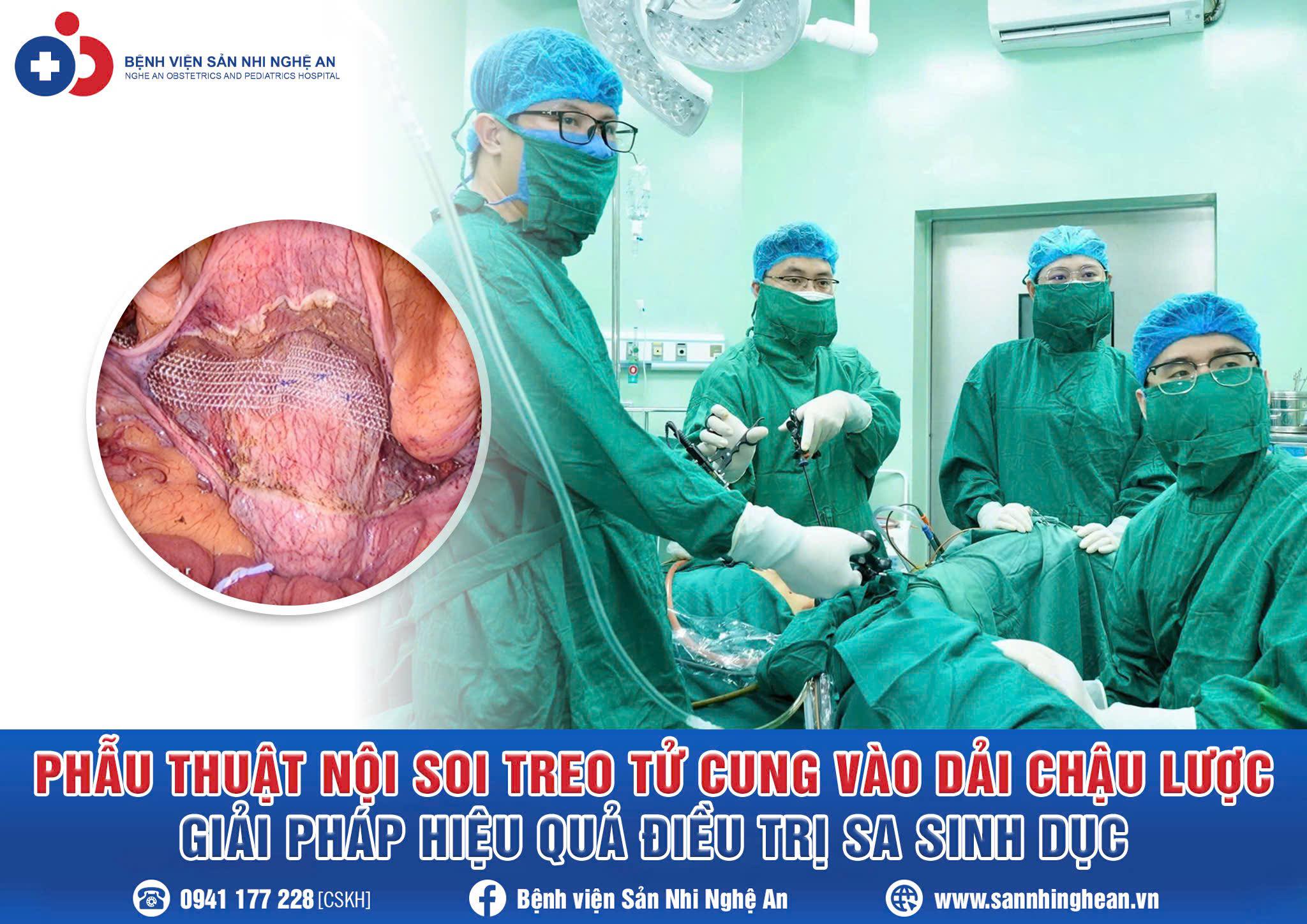 Vừa qua, các bác sĩ khoa Phụ ngoại – Bệnh viện Sản Nhi Nghệ An đã thực hiện thành công ca phẫu thuật nội soi treo tử cung vào dải chậu lược điều trị bệnh lý sa sinh dục cho bệnh nhân H.T.K.H (76 tuổi, trú tại Nghệ An).