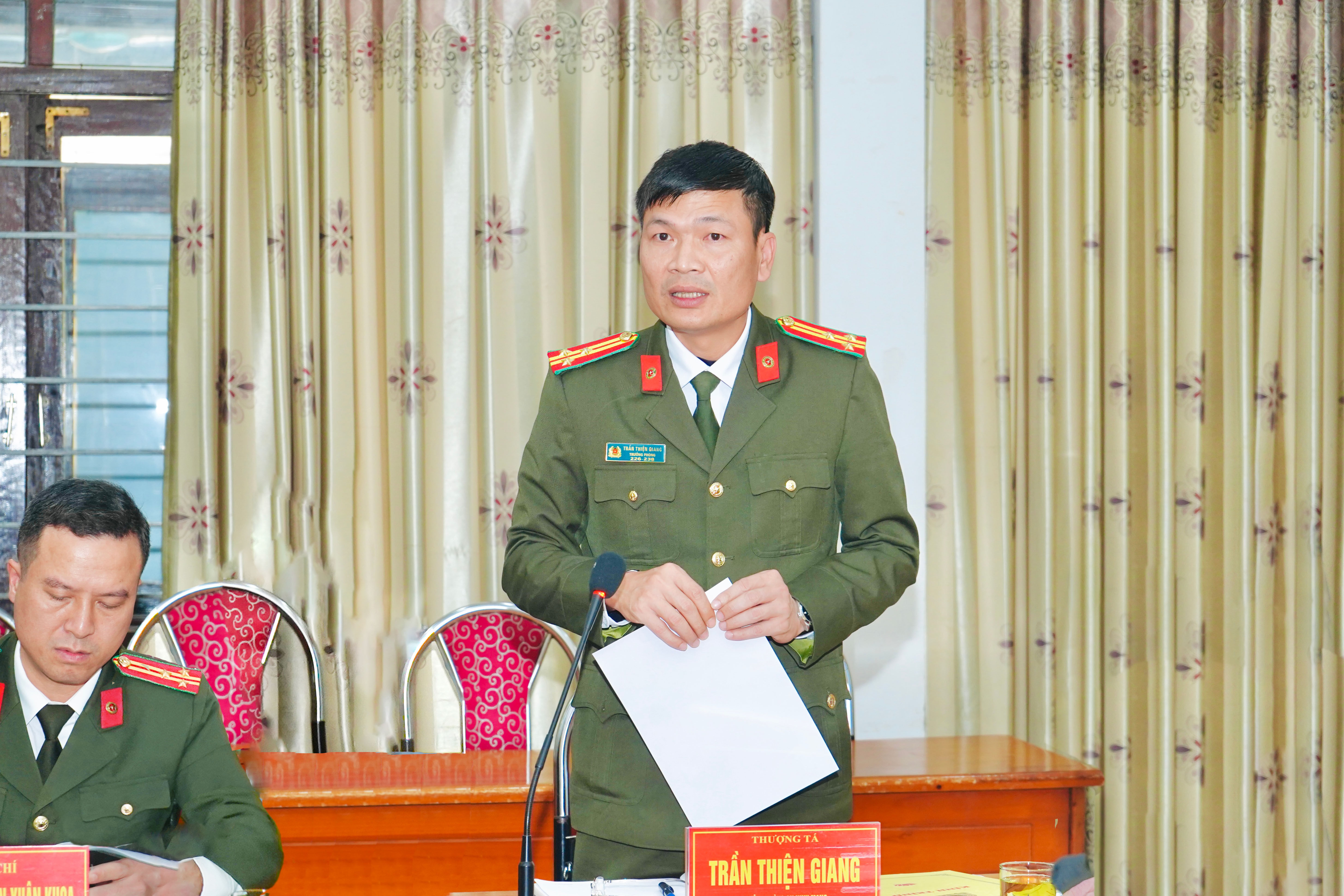 Đồng chí Thượng tá Trần Thiện Giang – Trưởng phòng PA05 phát biểu tại hội nghị