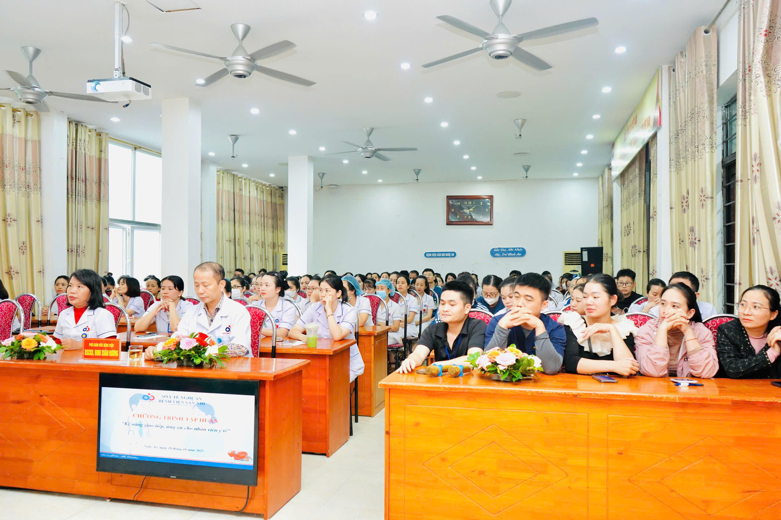 Vừa qua, Bệnh viện Sản Nhi Nghệ An tổ chức lớp tập huấn chuyên đề “Kỹ năng giao tiếp và Văn hóa ứng xử cho nhân viên y tế”. Sự kiện thu hút sự tham gia đông đảo của tất cả điều dưỡng, kỹ thuật viên, hộ sinh và cán bộ, viên chức đang công tác tại các khoa/phòng trong Bệnh viện.