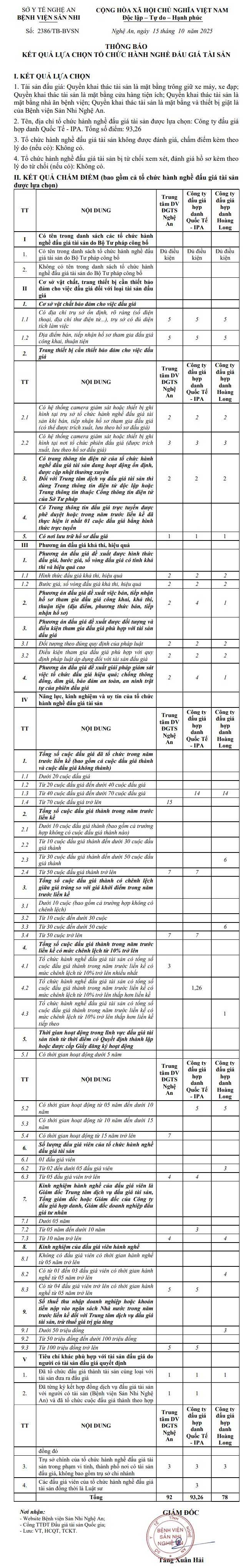 THÔNG BÁO KẾT QUẢ LỰA CHỌN TỔ CHỨC HÀNH NGHỀ ĐẤU GIÁ TÀI SẢN