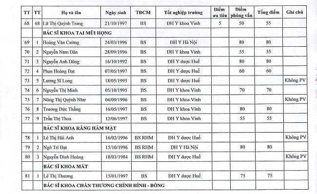 Bảng tổng hợp điểm xét tuyển viên chức năm 2021